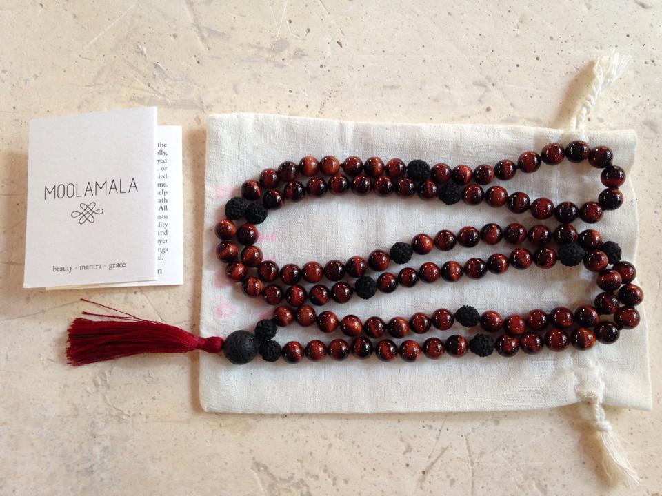 above: For a client who wanted two mala for saying a mantra given to him from a teacher, we sourced and selected the stones together to suit his needs, and made (a) a earthy and easy mala of picture jasper, petersite and rudraksha with a citrine guru bead, and (b) a serious mala of red tiger eye with black rudraksha.